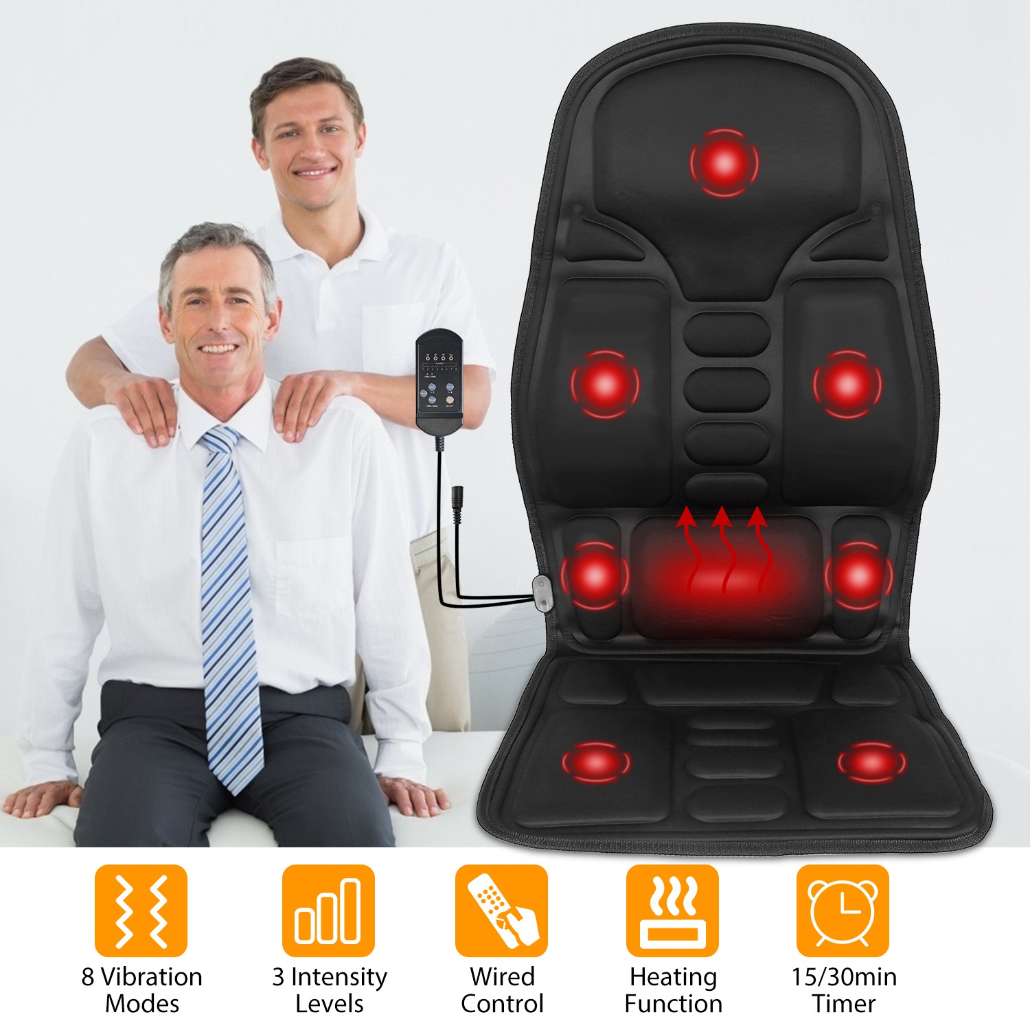 Back Massager Cushion Electric Massage Car Seat Cushion Chair Pad w/ Heating Function 8 Vibration Modes 3 Intensity Levels