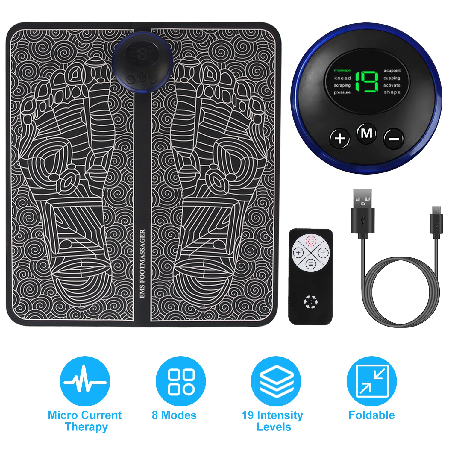 Home > Foot Massage Pad Electric Stimulator Massager Unit Leg Reshaping Muscle Pain Relax Foldable Massage Mat with 8 Modes 19 Intensity Levels Remote Contro