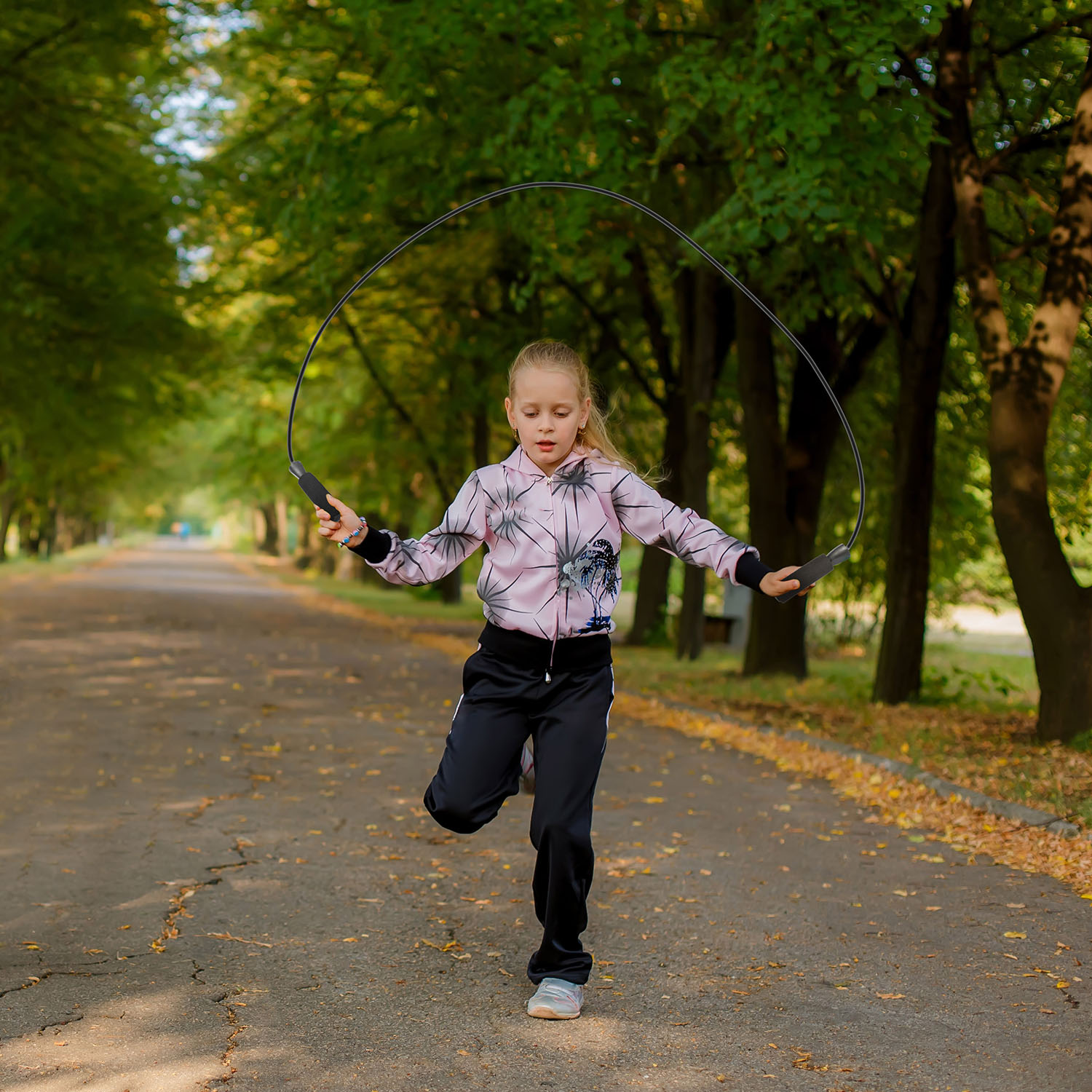 This perfect jump rope itself is in good weight and thickness and comfortable grips. Metal ball-bearings design ensures speedy smooth swivel for a safer and easier rope skipping. The rope is long and adjustable so that makes it great for men and women, for adults and kids, and for beginners and workout enthusiasts. Whether you're raising a kid or a boxer, this heavy-duty rubber rope is perfect for playground activities, sports training or a quick at home work out.